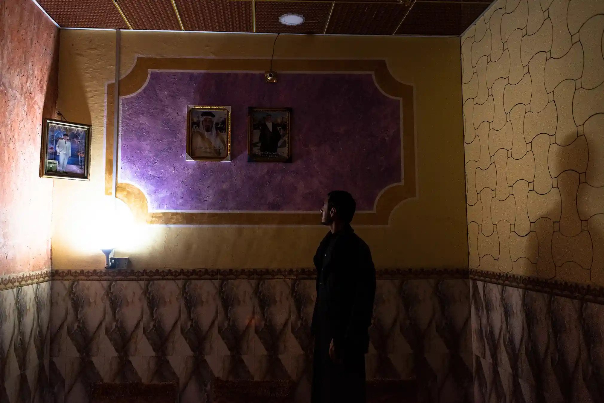 ينظر فلاح حسن – 30 عامًا – إلى صورة والده الذي توفي بسرطان الكبد، يقول حسن إنهم لم يعتقدوا مطلقًا أن أبخرة الغاز والعيش بجوار حقول النفط أمر خطير لهذا الحد، تعاني زوجته أيضًا من الربو وبعد وفاة والده أصبح شديد القلق على أطفاله الثماني، لكن يشعر بالغضب أيضًا لأنه يعيش بجوار آبار النفط بينما لا يجد وقودًا لتدفئة منزله.