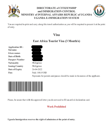 مع العلم أن كل من تأشيرة أوغندا أو تأشيرة شرق إفريقيا تصدران خلال يومين أو ثلاثة أيام من تعبئة الطلب إلكترونيًا ويتم إرسالها عبر البريد الإلكتروني لمقدم الطلب.