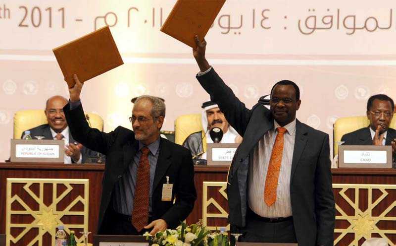 سنوات من المفاوضات بين الحكومة السودانية والحركات الممثلة لإقليم دارفور، أفرزت عن توقيع اتفاقية للسلام بين الحكومة وحركة العدل والمساواة السودانية المتمردة في الإقليم في العاصمة القطرية الدوحة، ضمن وثيقة الدوحة للسلام في دارفور، ووقع عن الحكومة السودانية رئيس الوفد التفاوضي أمين حسن عمر، وعن حركة العدل والمساواة قائدها محمد بشر.