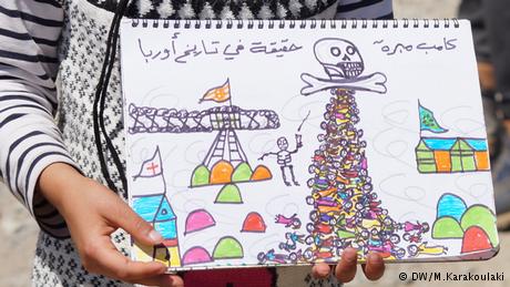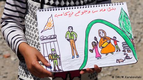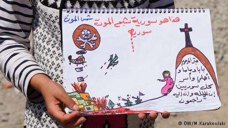 رسمت طفلة سورية لم تبلغ من عمرها سوى 10 سنوات مجموعة من اللوحات الفنية الصغيرة ببراءتها خلال تواجدها في مخيم للاجئين في دولة اليونان، يمكن أن نشاهد في هذه الصور واقع هؤلاء الأطفال برموز بسيطة تحمل في طياتها الخوف والألم والمعاناة.