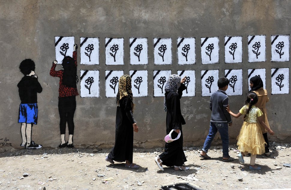 الفنان مراد سبيع، المُلقب في اليمن بفنان الشارع، الذي حوّل بقايا الدمار الذي أحدثته غارات التحالف السعودي على اليمن إلى جدران ملونة ورسومات تعبر عن الوضع الحالي في اليمن، استمر مراد في ملاحقة الأماكن التي تخلفها قوات التحالف مدمرة، ويعيد أحيائها بألوانه، الصورة السابقة هي لمجمع سكني تم قصفه من قبل قوات التحالف وقُتل فيه 15 طفلًا، قبل أن يذهب مراد إلى نفس المكان ليرسم على الجدران 15 وردة وبجانبها شريط أسود للحداد على أرواح الأطفال ضحايا القصف.