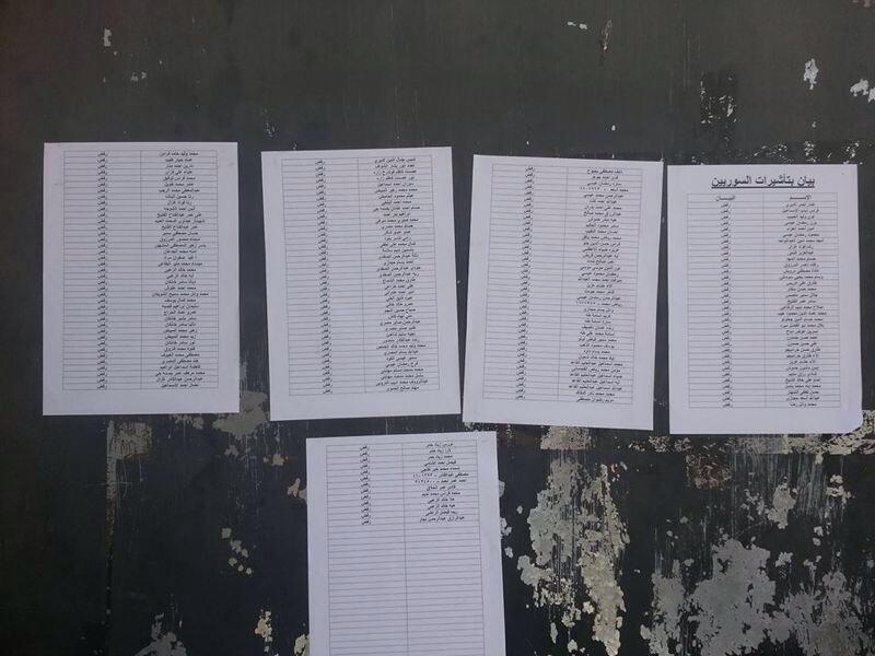 تداول نشطاء سوريون على صفحات الانترنت صورة لم يتسنى لنون بوست التأكد من مصدرها قيل انها أسماء السوريين الذين تقدموا بطلب للحصول على تأشيرة زيارة لمصر من السفارة المصرية في الرياض .