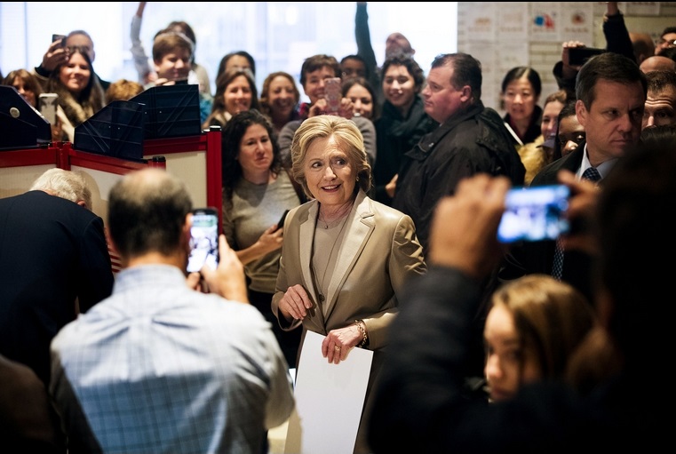 كانت الأمور تسير على مايرام بالنسبة لحملة كلينتون فالنتائج الأولية أول النهار كانت تشير لتقدم هيلاري على ترامب وأشارت تقارير أولية لتقدمها بنسبة 46.3% من مجموع الناخبين على ترامب الحاصل على ما مجموعه 43.6% من الأصوات، وذكرت النيويورك تايمز أن حظوظ فوز ترامب تقف عند 50%.