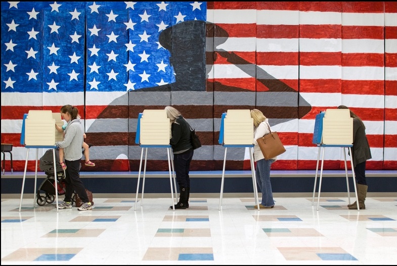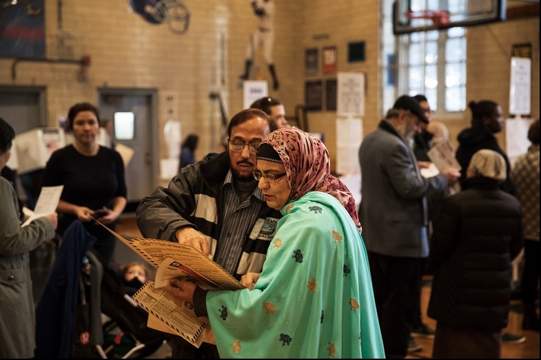 عائلة مسلمة من باكستان تسكن في أمريكا منذ 20 عامًا، تقوم بالإدلاء بصوتها لأحد المرشحين.