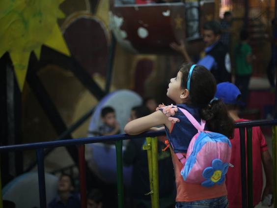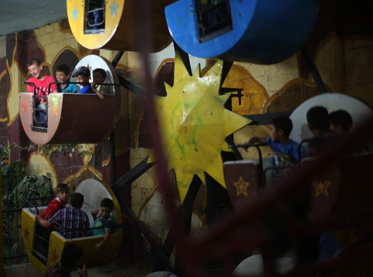 تقول إحدى الفتيات لموظفي اليونيسيف في أثناء زيارتهم للمكان: “أنا وأصدقائي نأتي هنا، لأنه آخر منتزه ما زال صالحًا للعب، فالمكان الذي اعتدنا أن نلعب فيه تم قصفه ولم يعد يعمل”.
