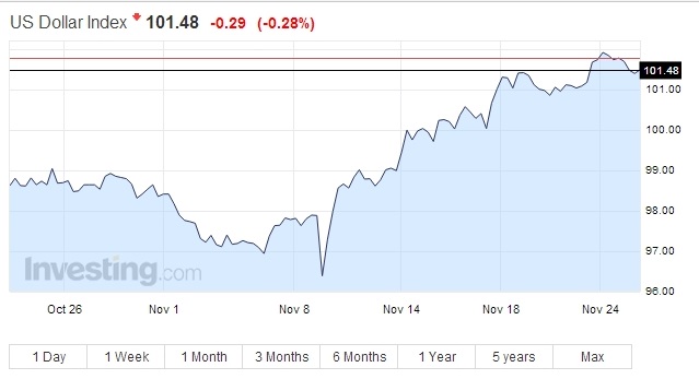 مؤشر الدولار يقيس قوة الدولار أمام سلة من العملات الرئيسية
