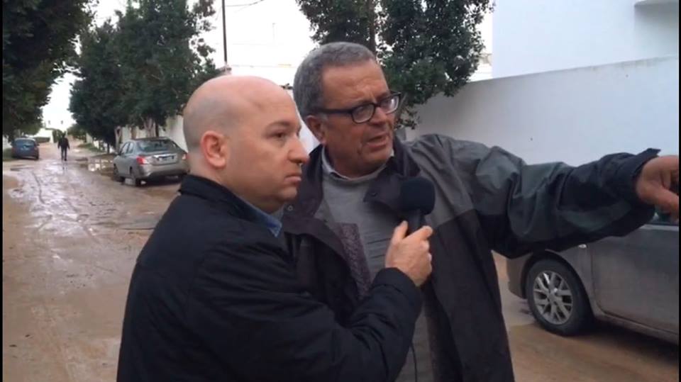 صحفي القناة العبرية العاشرة، يقوم بتقرير صحفي أمام بيت الشهيد محمد الزواري