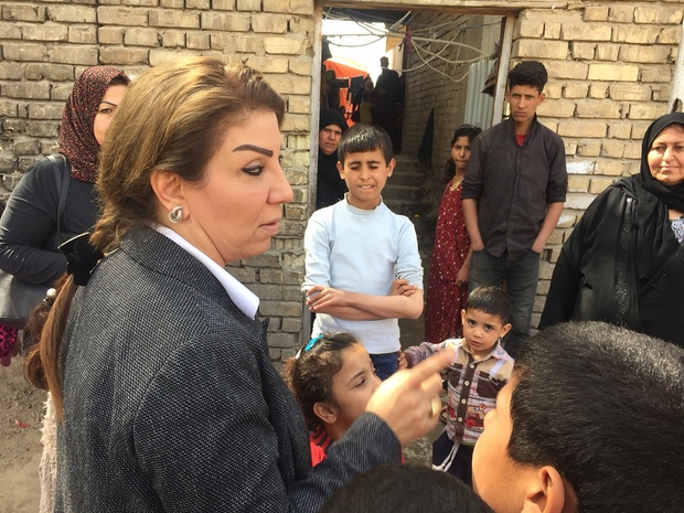 ندى إبراهيم مع عائلات اللاجئين في بغداد