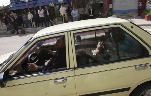 نقل رجل مصاب إلى مستشفى درعا يوم 23 من مارس 2011