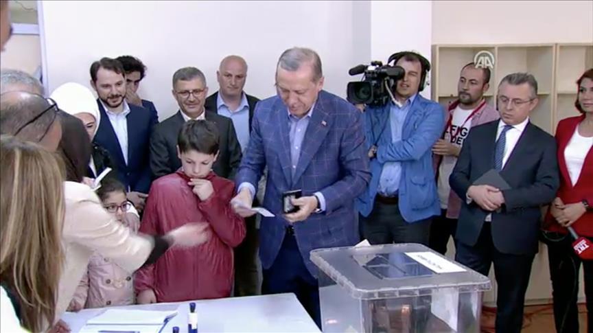 الرئيس التركي رجب طيب أردوغان أثناء الإدلاء بصوته في الاستفتاء