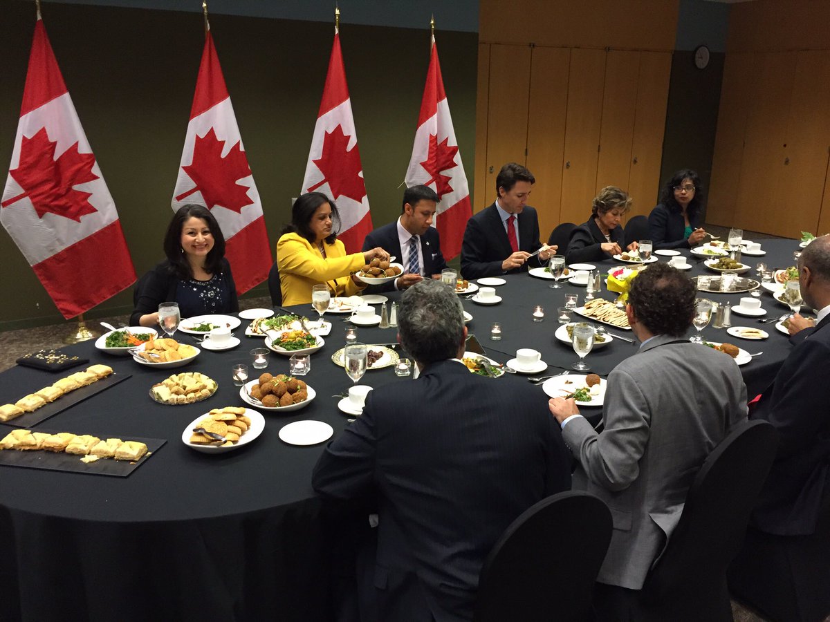“جاستن ترودو” رئيس الوزراء الكندي في إفطار مع ممثلي إحدى الجاليات المسلمة في كندا العام الماضي