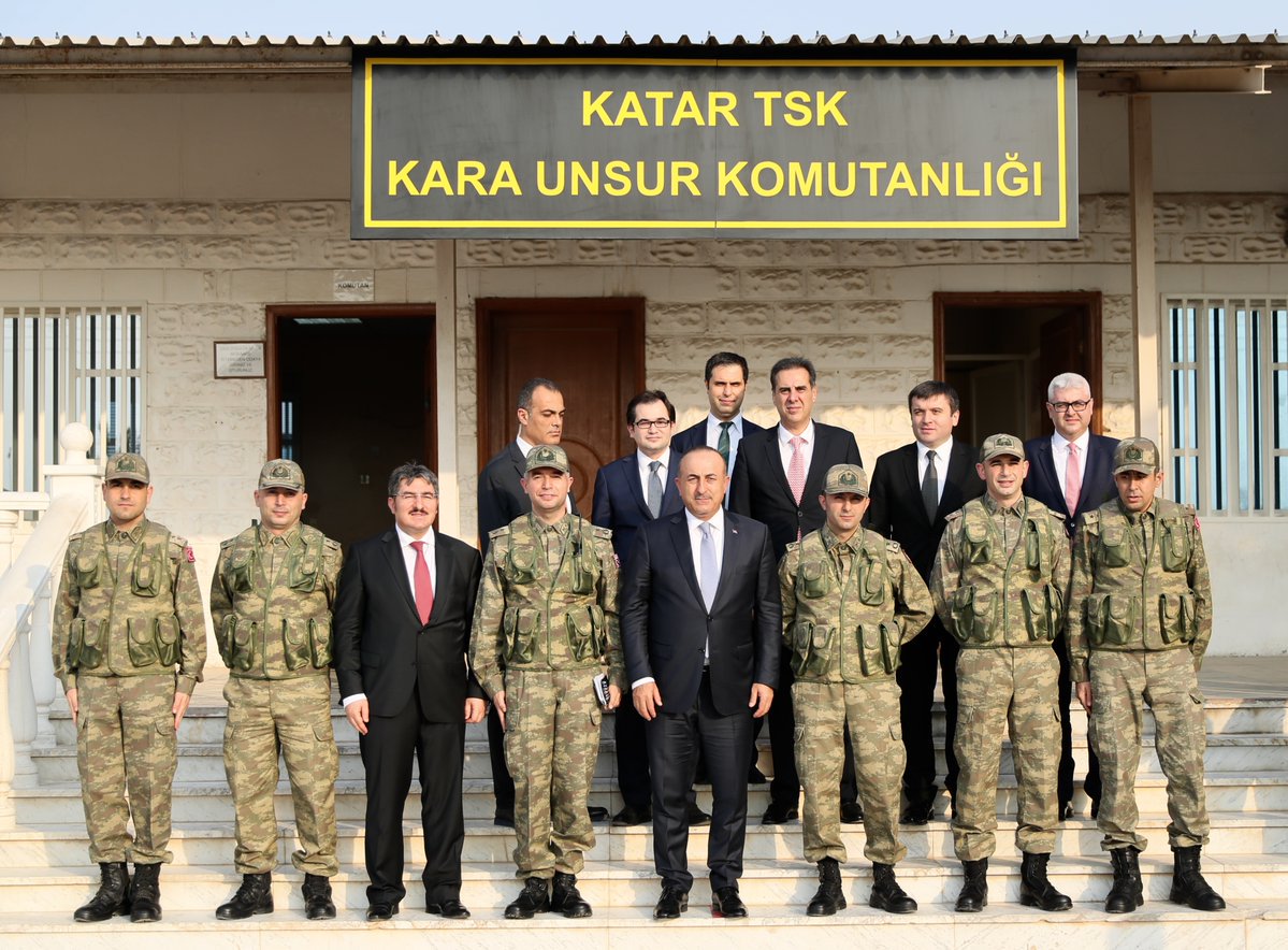 وزير الخارجية التركي جاويش أوغلو، خلال زيارته للقاعدة العسكرية التركية في قطر