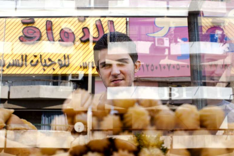 يرتب يحيى قطائفه الطازجة المعدّة لتوّها، وهي الحلويات التقليدية التي تقدّم في شهر الصيام رمضان في الشرق الأوسط، يحيى الذي كان يعمل خبازاً في سوريا وصل هذا الرمضان الى مخيم الزعتري للاجئين في الاردن .