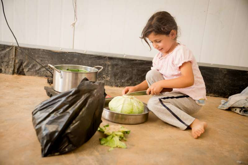 انه الثاني من رمضان، وبطبيعة الحال ليس الجميع هنا صائماً في مخيم الزعتري للاجئين في الأردن، كونها لا زالت صغيرة تستطيع رحمة أكل بعض الشعيرية التي تعدها عمتها أماني التي بدأت لتوّها في اعداد طعام الفطور .