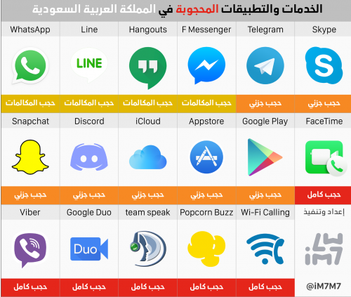 استخدمت السعودية جمهورها العريض لتلك المنصات كورقة ضغط على مالكيها لحجب حسابات أشخاص بعينهم أو غلق وحجب حسابات لمؤسسات إعلامية مثل قناة الجزيرة على منصاتهم، وذلك بدلًا من حجب المنصة بأكملها في السعودية كما فعلت سلطات الاتصالات السعودية مع تطبيقات للتواصل الاجتماعي الأخرى مثل “سكايب” أو “فايس تايم” أو “لاين” والتي تعاني من رقابة إلكترونية على تطبيقات الهواتف الذكية ويعاني بعضها من حجب كلي أو جزئي.