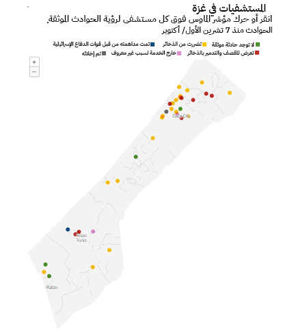 قالت جماعات الإغاثة إن المستشفيات العاملة مكتظة بشدة وتواجه نقصًا في الإمدادات المهمة مثل أدوية التخدير والمضادات الحيوية والشاش. وتعتمد الخرائط الواردة في هذه القصة على المعلومات الصادرة على مدار الحرب من قبل مجموعات الإغاثة (وكالات الأمم المتحدة بما في ذلك مكتب تنسيق الشؤون الإنسانية ومنظمة الصحة العالمية وأطباء بلا حدود وهيومن رايتس ووتش وجمعية الهلال الأحمر الفلسطيني) بالإضافة إلى العاملين في المستشفيات والمنظمات التي تديرها، وتقارير وسائل الإعلام، ومجموعة الأبحاث غير الربحية “رؤية انعدام الأمن“، والجيش الإسرائيلي ووزارة الصحة في غزة. ولم تتمكن الصحيفة من التحقق بشكل مستقل من بعض البيانات.