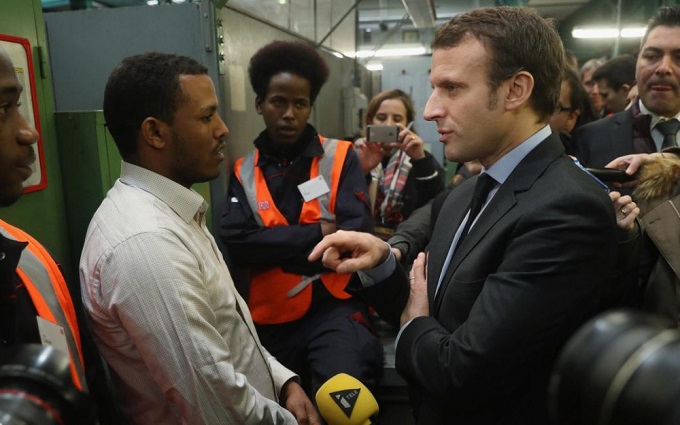 الرئيس الفرنسي إيمانويل ماكرون يزور مركز لجوء
