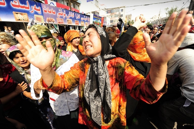 مسلمو الأويغور في الصين في أثناء إحدى حملات المداهمة لمحلاتهم ومنازلهم