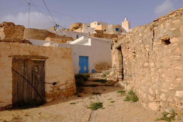 وعلى العكس من بيوت مطماطة التي تقع تحت الأرض، تقع بيوت تامزرت على تلة ترتفع عن الأرض نحو 460 مترًا وهناك مسجد عند أعلى قمة على التلة، من بعيد لا تبدو بيوت البربر التي تشبه ألوانها لون الأرض ظاهرة للعيان، لكن عندما تقترب منها تجد أن هذه المباني الصخرية يتخللها أبواب وشبابيك زرقاء زاهية اللون.