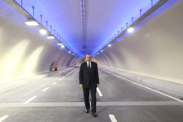 صورة للرئيس التركي، رجب طيب أردوغان، التقطت أثناء افتتاح نفق البوسفور في كانون الأول/ ديسمبر سنة 2016.