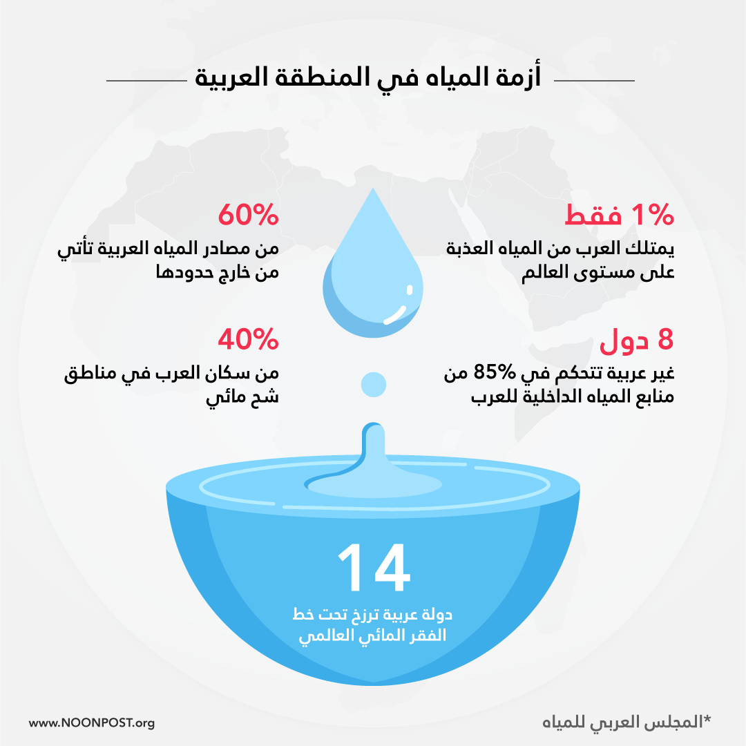 “الأثرى نفطيًا لكن الأفقر مائيًا” هذا هو الوصف الأنسب للمنطقة العربية وفي ذلك مفارقة لا يردم الهوة بين قطبيها مال ولا فائض الحديث عن مؤامرة تحاك، إذ تشير العديد من التقارير إلى أن ما يقرب من ثلثي الدول العربية تعاني الفقر المائي المدقع، و105 ملايين نسمة محرومين من مياه الشرب النقية.