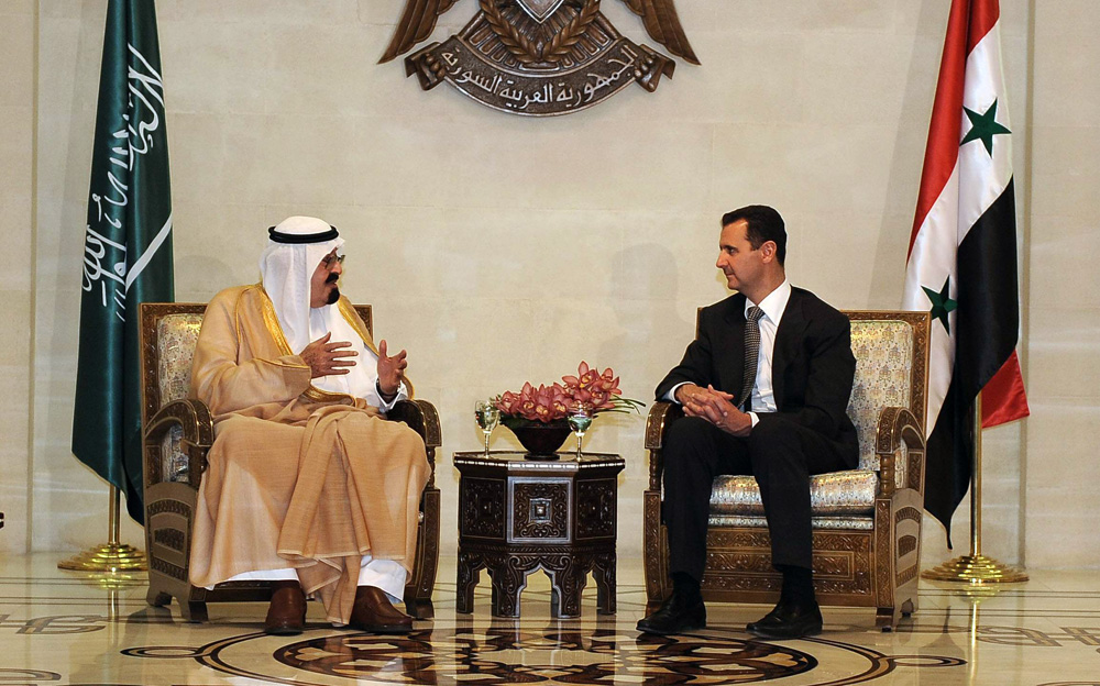 الملك السعودي عبد الله بن عيد العزيز مع الرئيس السوري بشار الأسد سنة 2009