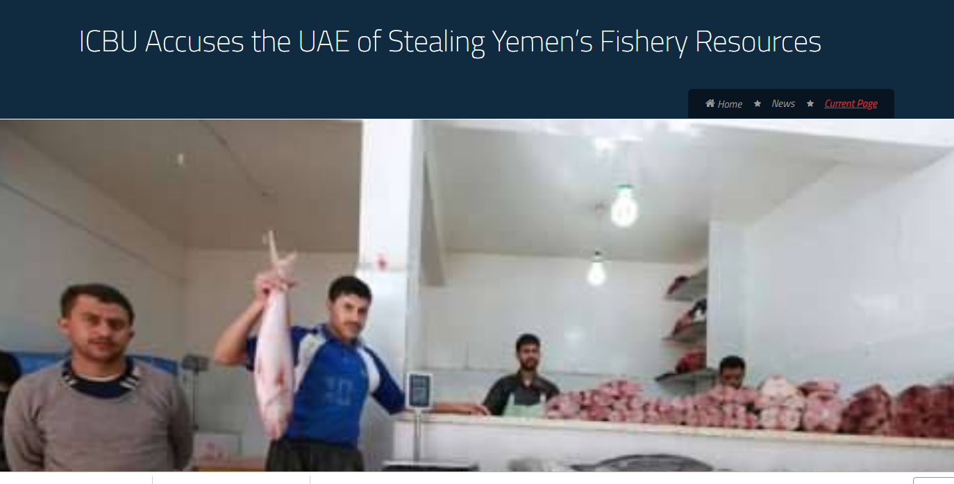 اتهمت الحملة الدولية لمقاطعة الإمارات (ICBU) السلطات الإماراتية ومليشياتها العاملة في اليمن بسرقة ونهب الثروة السمكية اليمنية ونقلها إلى الإمارات من خلال سفن الصيد الكبيرة ووسائل النقل العسكرية