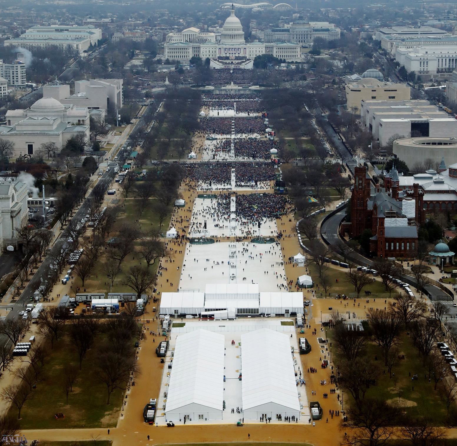 حفل تنصيب دونالد ترامب رئيسا للولايات المتحدة خلال شهر كانون الثاني/ يناير 2017. ادعى فريق ترامب أن الحشد الذي حضر هذه المناسبة كان الأكبر على الإطلاق.