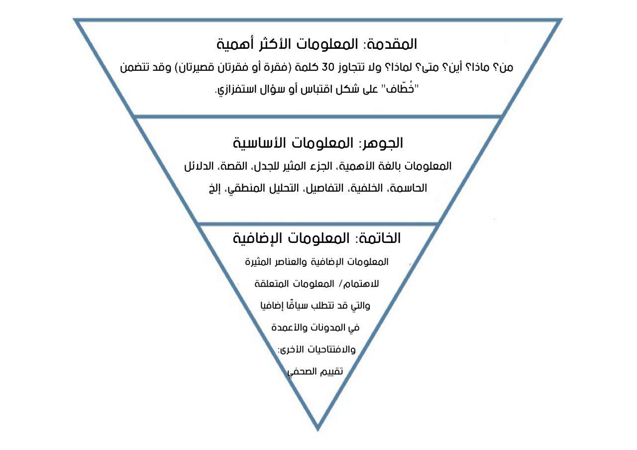 إذ كنتَ قد قرأت ما سبق وتتساءل عن الطرق المثلى لكتابة العينات إذا لم تكن قد كتبتَ مقالًا إخباريا من قبل، فأنتَ قد طرحتَ سؤالًا جيدا. ويمكن القول إن كتابة الأخبار تختلف عن كتابة المقال بسبب اعتمادها بالأساس على صيغة خاصة. وفي الوقت الحالي، يمكنني التطرق إلى “الهرم المقلوب” أو الحديث عن البينة الهيكلية للفقرة الافتتاحية، فكلاهما مهم ويجدر بك قضاء بعض الوقت لإدراك المقصد منهما، لكنني لا أعتقد أن هذا الأمر ضروري في البداية.