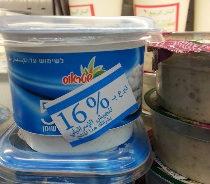 وكانت قد انتشرت في الآونة الأخيرة العديد من الصور لبضائع إسرائيلية وضع عليها ملصق يدعو المواطنين الإسرائيلي لشراء هذا المنتج، كون 16% من قيمته تذهب لدعم الجيش الإسرائيلي.