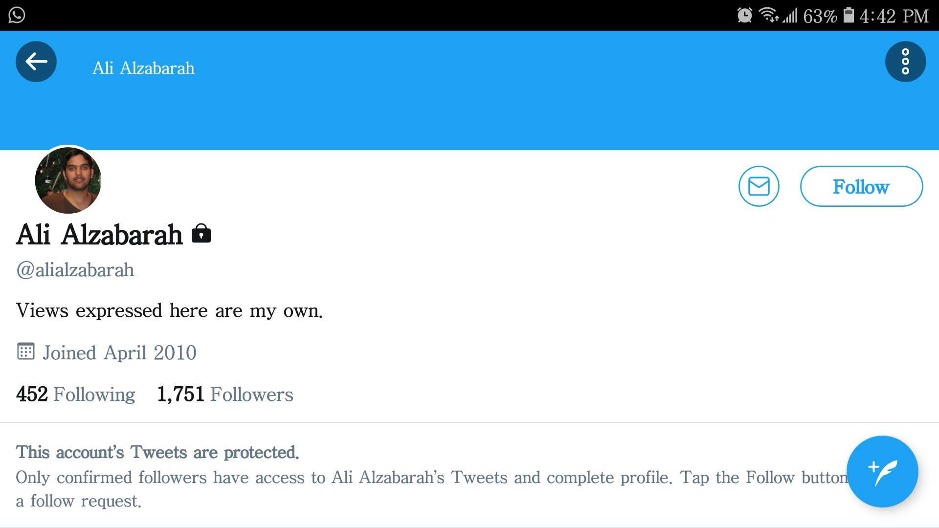 في الفترة الواقعة ما بين مايو ونوفمبر 2015 دخل علي الزبارة بشكل غير قانوني لأكثر من 6 آلاف حساب سعودي من بينهم معارضين، و33 حساب من بينها كانت السعودية قد أرسلت اعتراضات لتويتر بخصوصه، من بينها حساب لمعارض سعودي يسكن لاجئًا سياسيًا في كندا كما ذكر تقرير الإف بي آي.