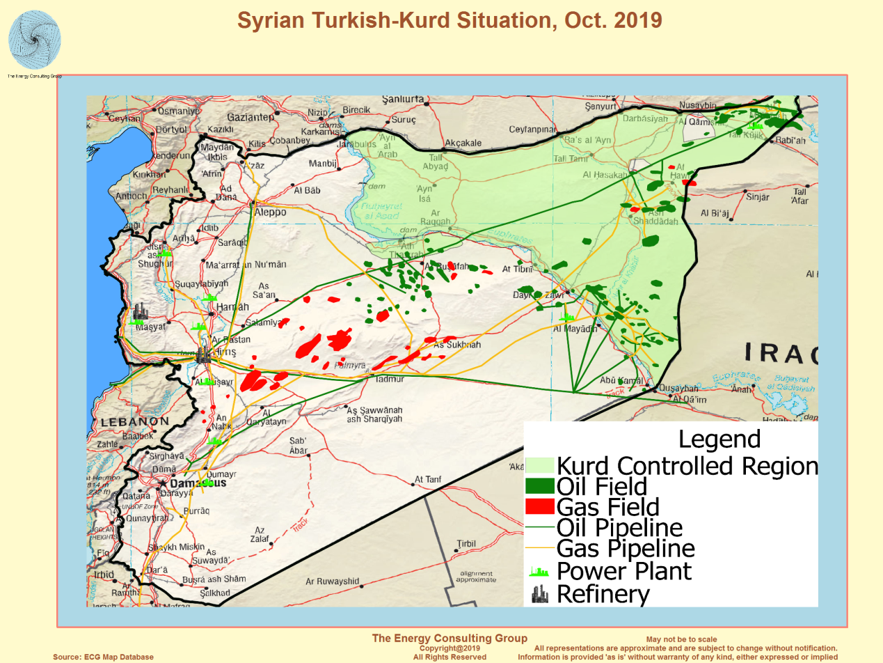 بدء الإنتاج التجاري للنفط في سورية عام 1968 بكميات قليلة، وتطور الإنتاج ليبلغ ذروته سنة 1995 ( 591 ألف برميل يومياً)، وبدءً من عام 1996، بدء التراجع التدريجية للنفط ليصل إلى 422 ألف برميل يومياً سنة 2005 ثم وصل إلى 385 ألف برميل يومياً سنة 2010، وذلك جراء التخريب الذي أصاب الطبقات المنتجة للنفط وتعرضها للإماهة بسبب عشوائية الإنتاج وعدم اتباع سياسات لتنمية المخزون البترولي وتطوير آليات الإنتاج وترشيده. وعلى الرغم من تضارب الأنباء حول كميات الانتاج الفعلية من النفط في سورية، أي تلك التي تشرف الحكومة السورية رسمياً على تسويقها، وتلك الخارجة عن سلطة النظام في شرق الفرات والتي تمثل الجزء الأكبر من النفط السوري، وبالاعتماد على نشرة “بريتيش بيتروليوم” التي تنشر الكميات الرسمية فقط، فإننا نلاحظ أن إنتاج النفط وصل إلى 353 ألف برميل يومياً في عام 2011، و171 ألف برميل في عام 2012، و59 ألف برميل في عام 2013، و33 ألف برميل في عام 2014، ثم 27 ألف برميل في عام 2015، و25 ألف برميل في عامي 2016 و2017، و24 ألف برميل في عام 2018. أما الكميات الغير معلنة التي يتم انتاجها شرق الفرات، والتي تستثمرها قسد محلياً أو تسوقها عن طريق شمال العراق، فمن المتوقع أنها لا تقل عن 100 ألف برميل يومياً.