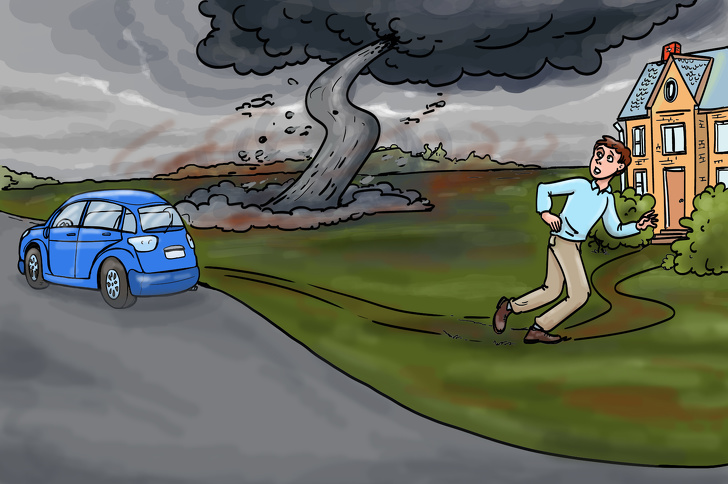 لا تمثل السيارة أفضل مكان تختبئ فيه عندما تحدث العاصفة. بل يجب عليك أن تخرج منها وأن تركض في أسرع وقت ممكن للعثور على مأوى أو بنية مغطاة. ولكن قد لا تجد في بعض الأحيان أي شيء تختبئ فيه.