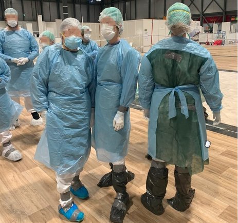 المشكلة التي رافقت النقص في أعداد الأطباء والممرضين، هي النقص الحاد بمعدات السلامة الشخصية (البذلات الواقية، الكمامات، القفازات وباقي مستلزمات الوقاية)، هذا النقص زاد المشكلة تعقيدًا، ففي إسبانيا مثلًا هناك 15.000 مصاب من العاملين بالمؤسسات الصحية (أي نحو 14% من المصابين بـCOVID19 من العاملين بالمؤسسات الصحية)، هذه الأعداد المرتفعة للإصابات تزيد مشكلة نقص أعداد الأطباء والممرضين مما يفاقم الوضع في المؤسسات الصحية، ففي بريطانيا مثلًا هناك طبيب واحد من أصل أربعة أطباء في عزل صحي أو إجازة بسبب مرضه (بحسب الكلية الملكية لأطباء الباطنية).
