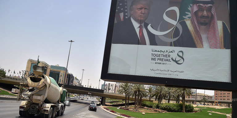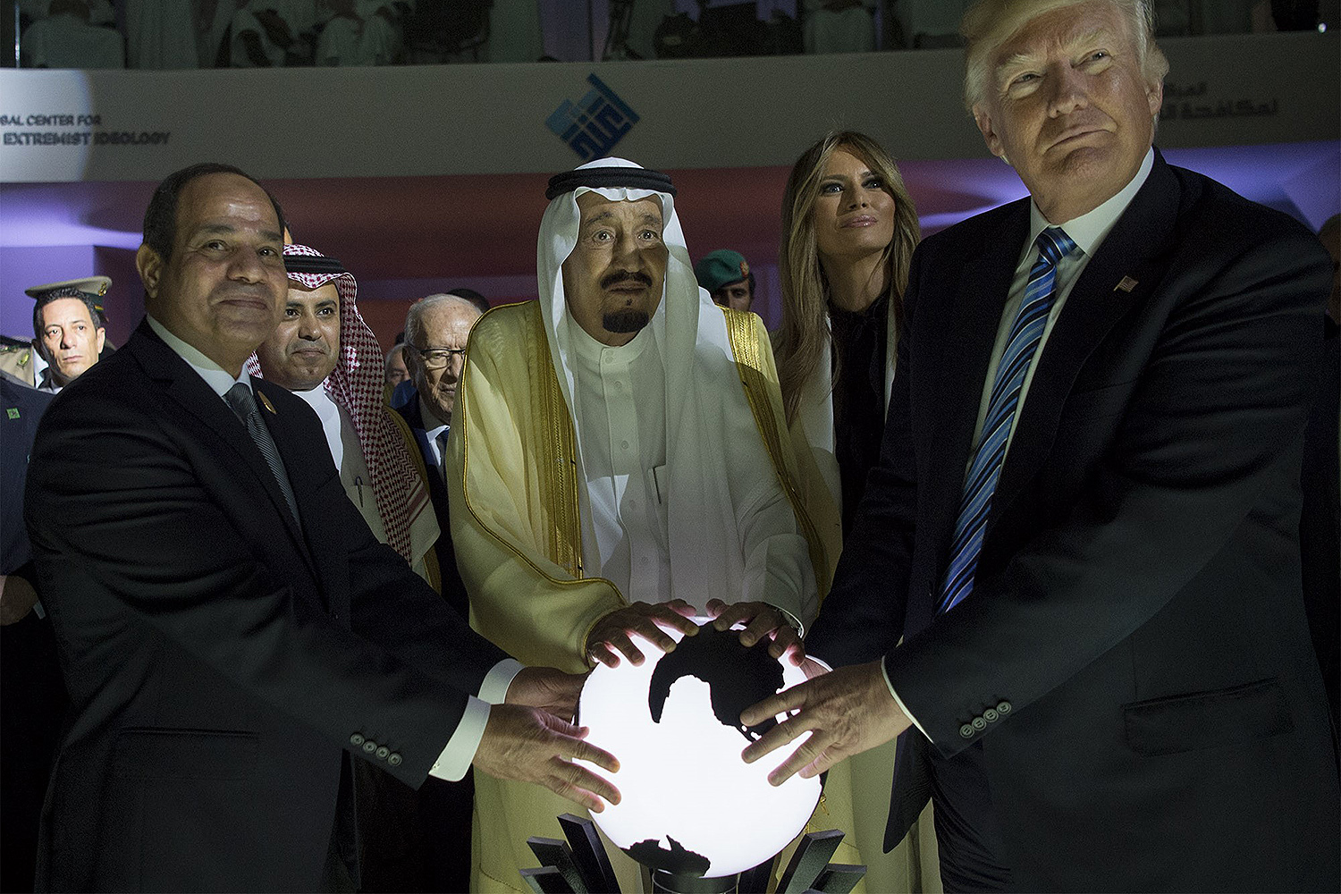 بسط القادة السعوديون السجادة الحمراء لترامب وحضّروا الكرة المتوهجة استعدادا لأول رحلة خارجية له كرئيس. كان هذا الأمر بمثابة تغير جذري مفاجئ، خاصة بعد هجمات ترامب على المسلمين والهجمات المتكررة على المملكة العربية السعودية خلال الحملة الانتخابية، عندما اتهم ترامب المملكة بتنفيذ عملية 11/9، إضافة إلى انتقاده لإسقاط الحماية الأمريكية وتهديده بمقاطعة اقتصادية.