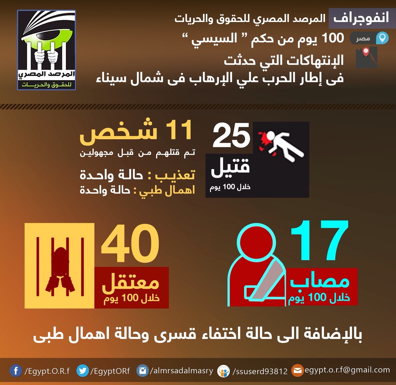 تقرير الانتهاكات بشمال سيناء خلال 100 يوم من حكم السيسي