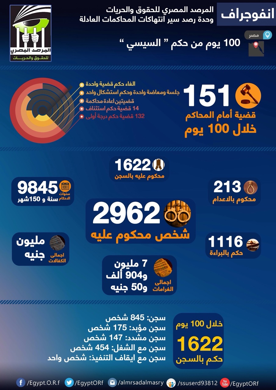 تقرير المحاكمات خلال 100 يوم من حكم السيسي