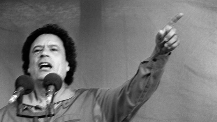 حشد القذافي لأفكاره وأقحم كل المؤسسات، فمثلًا في أبريل/نيسان 1976 ثار الطلاب ضده، فلم يتردد في شنقهم، وأمام زملائهم، بل في الحرم الجامعي، وأذاع الحدث تليفزيونيًا، وشاهده الليبيون جميعًا، وهذه المراسم تكررت في أعوام لاحقة، وفي حقبة الثمانينيات كانت ليبيا عبارة عن سجن كبير، ووصل القذافي لذروة الطغيان وفق المؤرخ محمد العنزي، وحرم القذافي العمل التجاري ومنع الناس من السفر وصادر الممتلكات والبيوت وتداخلت الحقوق، وفق دستوره الأخضر وجرم الأحزاب وشرع ضدها الإعدام بـ1972، فـ”من تحزب خان”.