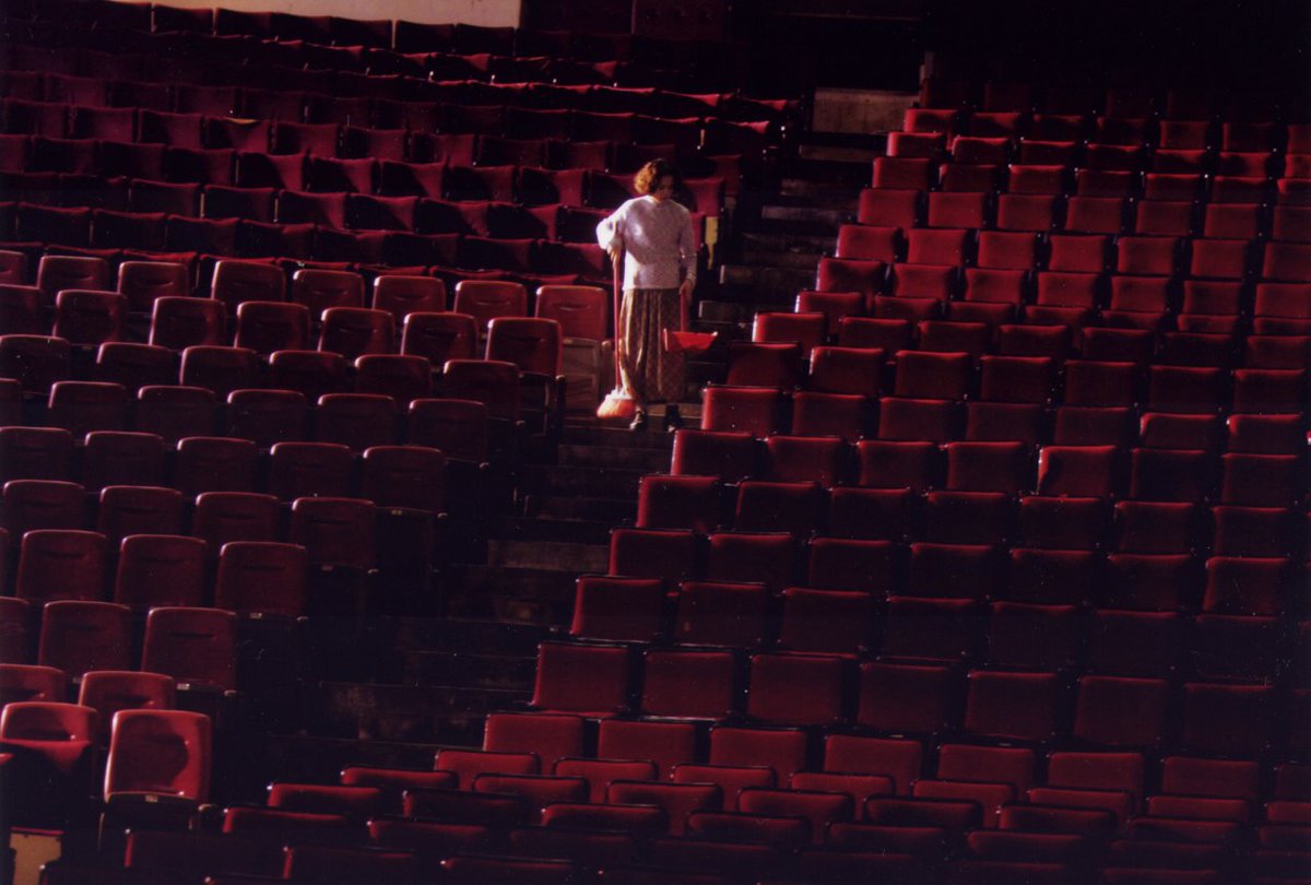 المشهد الرئيسي Master Seen في الفيلم لم يكن مشهدًا بالمعنى المتعارف عليه، الكاميرا ثابتة تمامًا، تَخطو فتاة شباك التذاكر متهادية على السلالم صعودًا وهبوطًا تعرج على إحدى قدميها، تحاول تنظيف ما خلفه جمهورٌ ضئيل من قمامة، أشبه بالرقصة الأخيرة، صوت الهواء يقطع الصمت الهائل، دبيب أقدامها يضخم صدى صوت يعج بالرثاء، ثم تخرج من القاعة وتظل الكاميرا مثبتة بنفس الزاوية ونفس المكان لمدة دقائق، حتى نشك أننا نرى صورة وليس فيلم، صورة تعج بالتفاصيل المؤقتة، تتشبع العيون من رؤية شيء كأنما لم يروه بعد ذلك أبدًا.