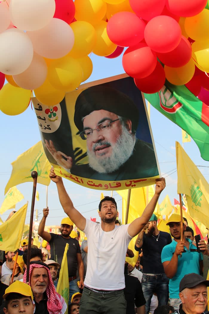 منقذ الشعب: يقول المراقبون إن الطريقة التي يبعد بها “حزب الله” الشبهات عن نفسه هي توجيه أصابع الاتهام إلى أطراف أخرى النأي بنفسه عن الحكومة. يظهر المؤيدون في الصورة دعمهم للزعيم حسن نصر الله في سهل البقاع اللبناني.