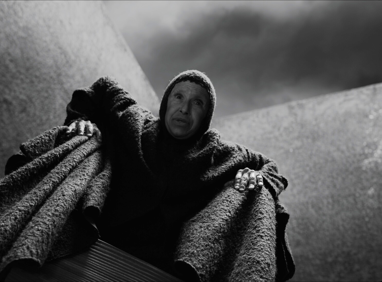 بالنظر للعمارة داخل الفيلم، لم يصمم جول وفريقه القلعة بناءً على احتياجات الإنسان، فالعلاقة بين العمارة كحيز مؤلف من طبقات، والأفراد داخل ذلك الحيز ليست علاقة نفعية في باطنها، ولا يمكن إقامتها على ذلك الأساس الذي يضمن للفرد احتياجاته المادية والمعنوية، فمكبث لا يحتمي بحوائط القلعة بقدر ما تعمل تلك الحوائط كوعاء حافظ لتمرده، كمرآة يرى فيها ردة فعلٍ لانتفاضاته، يمارس فيها وجوده بعصيان وجموح، يحدثها وتحدثه، تقف وراءه بهيمنة وحشية، تفرض نفسها على وجوده المصغر أمامها، أي أنه يرى فيها نفسه، في الحوائط الشامخة والقيعان الرنانة والممرات الطويلة، يتجسد هو فوق العالم، على تلٍ يسمو في علوه، ويطئ كل المنافسين.