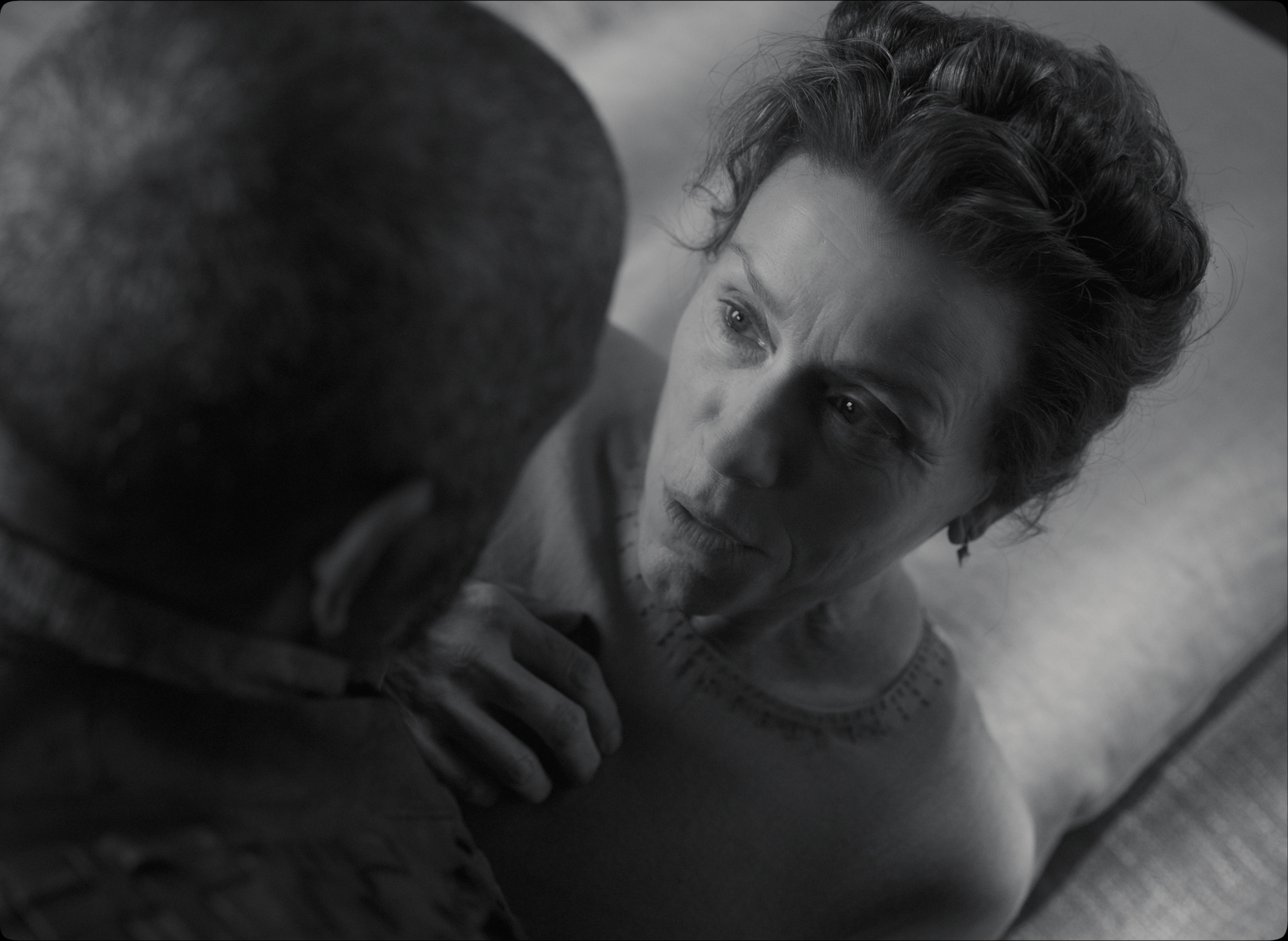 فضل جول أن يصنع نسخته بالأبيض والأسود، ليحيلنا إلى إسقاط درجتي اللون على شخوص القصة، ويفتح من خلال ذلك مجالًا لفهم السردية، فاللونان الأبيض والأسود يدعمان مبدأ التناقض، أي يمثلان ثنائية قيمية تهيمن على حبكة شكسبير الكلاسيكية، الخير كله أو الشر كله، الشياطين مكبث وزوجته، والملائكة مكدف ومالكوم والملك دنكن، لا وجود للمنطقة الرمادية الملتبسة التي تبيح النقيض والضد، وتسمح بجموحٍ انفعالي وهبوطٍ ملائكي، لذلك فالأبيض والأسود هي الصيغة التجريدية المناسبة لتعرية الشخوص والكشف عما هو أكثر من النية المعلنة، رؤية مكبث (الممثل دنزل واشنطن) غارق في الظلام، بعد أن أصابته لوثة القوة وهوس الاستبداد، فأضحى منساقًا خلف رغبته في السمو، ومكدف (الممثل كوري هوكينز) المحمل بنبلٍ وجسارة فرسان القرون الوسطى، الذي يختبر عناء الفقد، ويتجشم معاناة القضاء على الشر المطلق، حتى شخصية روس (الممثل اليكس هاسيل) لم يخرج عن سياق الخير المبطن في لعبة الامتثال والمجاراة لسيده.