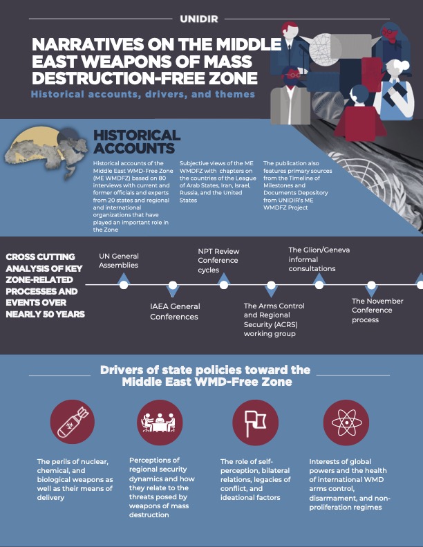 خلال “حدث” مُضيّق للغاية على الإنترنت استضافته الأمم المتحدة بشأن هذه القضية في أوائل آب/أغسطس، كان أكثر ما يمكن للمشاركين التوصل إليه هو “رسم بياني” معقد حول جميع “الروايات” التي لا تزال مختلفة فيما يتعلق بمقترح منطقة خالية من أسلحة الدمار الشامل أخرى في الشرق الأوسط. (انظر الصورة.)
