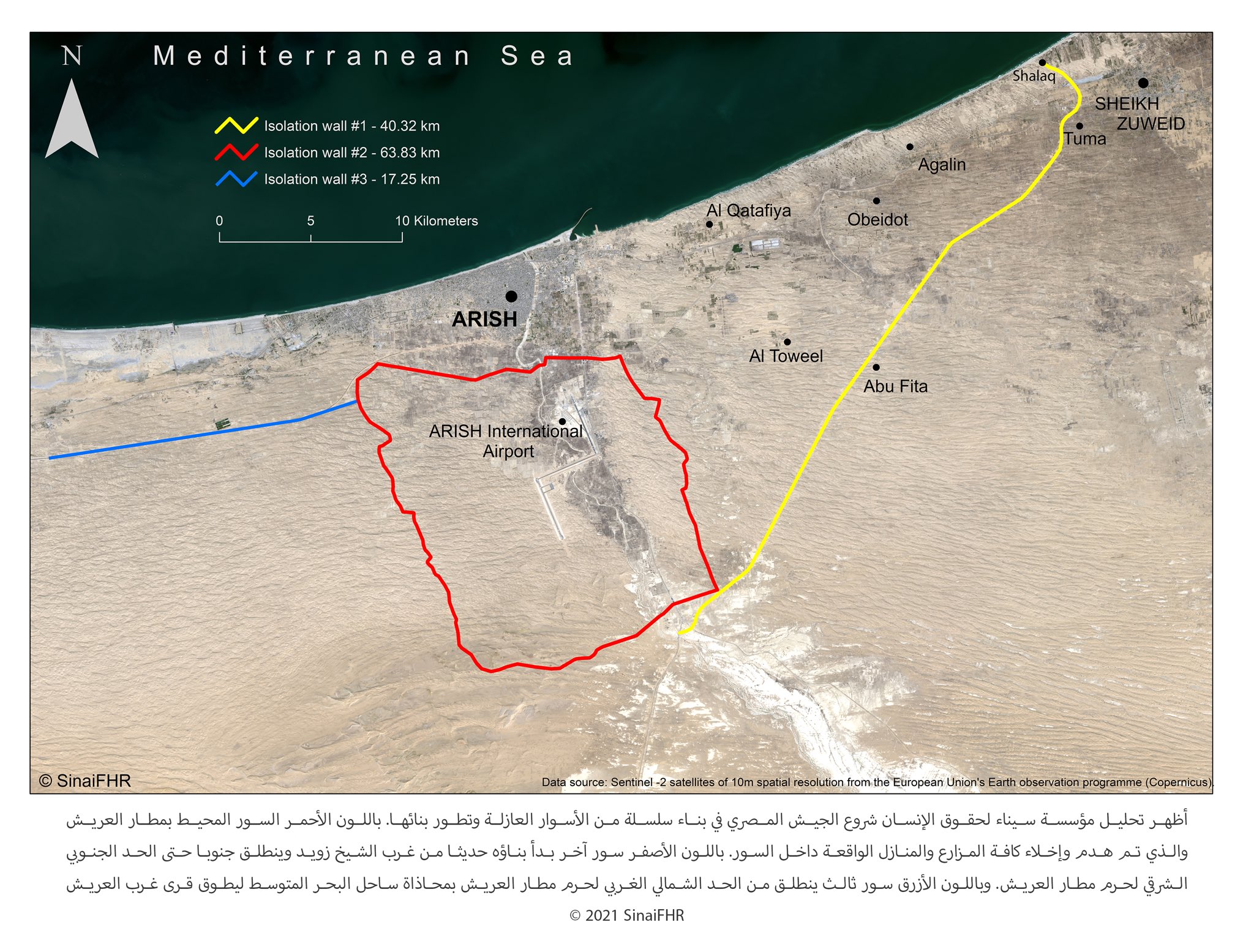 وتؤكد تلك الخرائط المسربة ما نشرته منظمة سيناء الحقوقية قبل 15 شهرًا بشأن قيام الجيش ببناء جدران في شمال سيناء تشبه في مواصفاتها الجدار الحدودي مع قطاع غزة، وذلك بارتفاعات تصل إلى 6 أمتار، مرفقة بصور حصرية مدعمة بصور من الأقمار الصناعية، محذرة أن تلك الجدران ستطوق مدن شرق سيناء وتعزلها عن بعضها البعض.