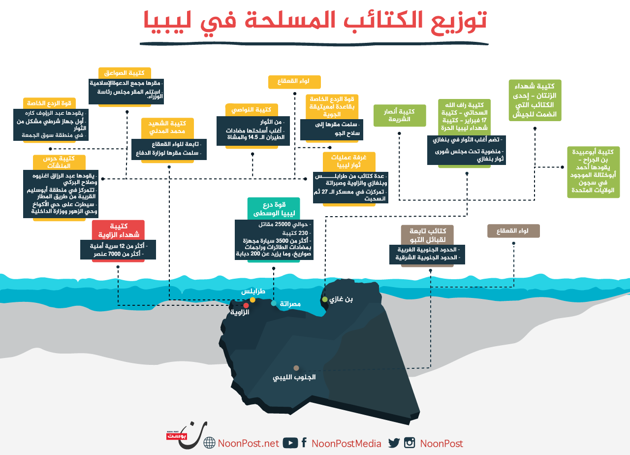 نحاول في هذا التقرير تشكيل خارطة التشكيلات المسلحة الليبية حسب امتدادها جغرافيًا، وتلخيص مسيرة كل مكون منها في الفترة الماضية، بالإضافة إلى التكتلات التي شكلتها.