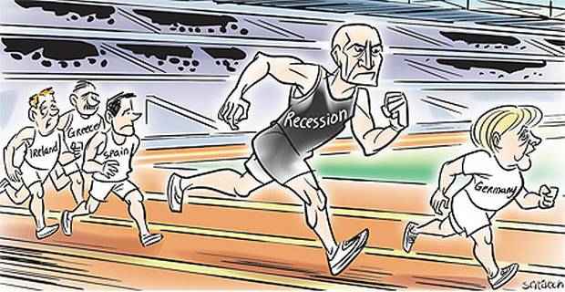 كاريكاتير لرئيس الوزراء خاريلاوس تريكوپيس بعد الأزمة المالية
