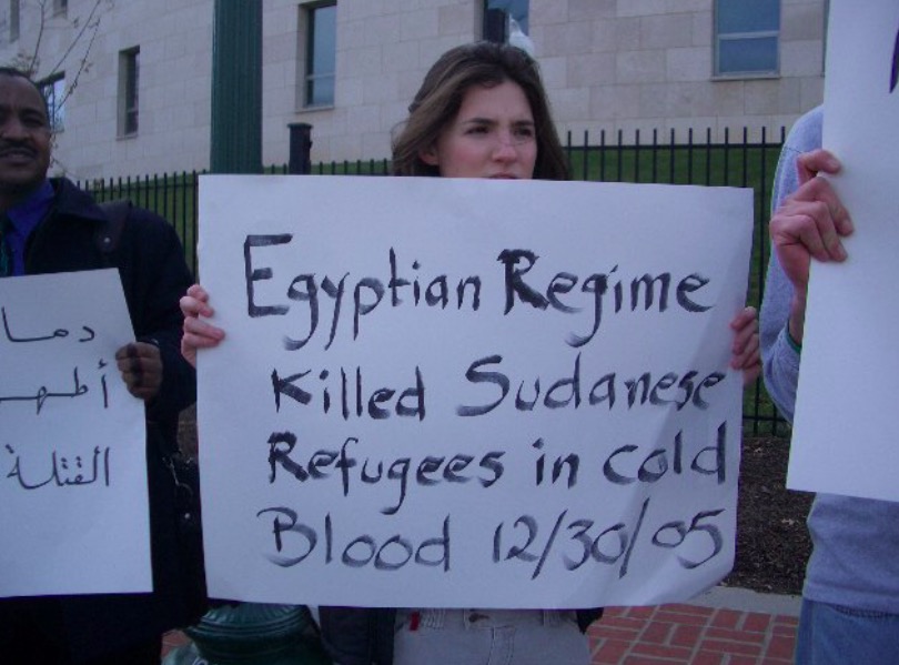 قررت المفوضية السامية للأمم المتحدة لشئون اللاجئين في 2004 عدم التعامل مع اللاجئيين السودانيين وعدم منحهم أوراق التسجيل، مما أغضب العديد منهم وقرروا في عام 2005 الاعتصام في حديقة “مصطفي محمود” الواقعة أمام مقر المفوضية السامية للأمم المتحدة في القاهرة للتظاهر على قرارات المنظمة، وبعد شهور من المفاوضات الفاشلة بين الطرفين إجتاحت الشرطة المصرية في ديسمبر حديقة مصطفى محمود لتقوم بالتفريق العنيف بين المتظاهريين بالهراوات ومدافع المياه والضرب بالأيدي والعصيان، مما أدى إلى قتل 29 لاجئ من بينهم 11 طفلًا وحالة تم التأكد من إنتحارها مباشرة بعد تفريق المتظاهرين من الحديقة بالعنف.