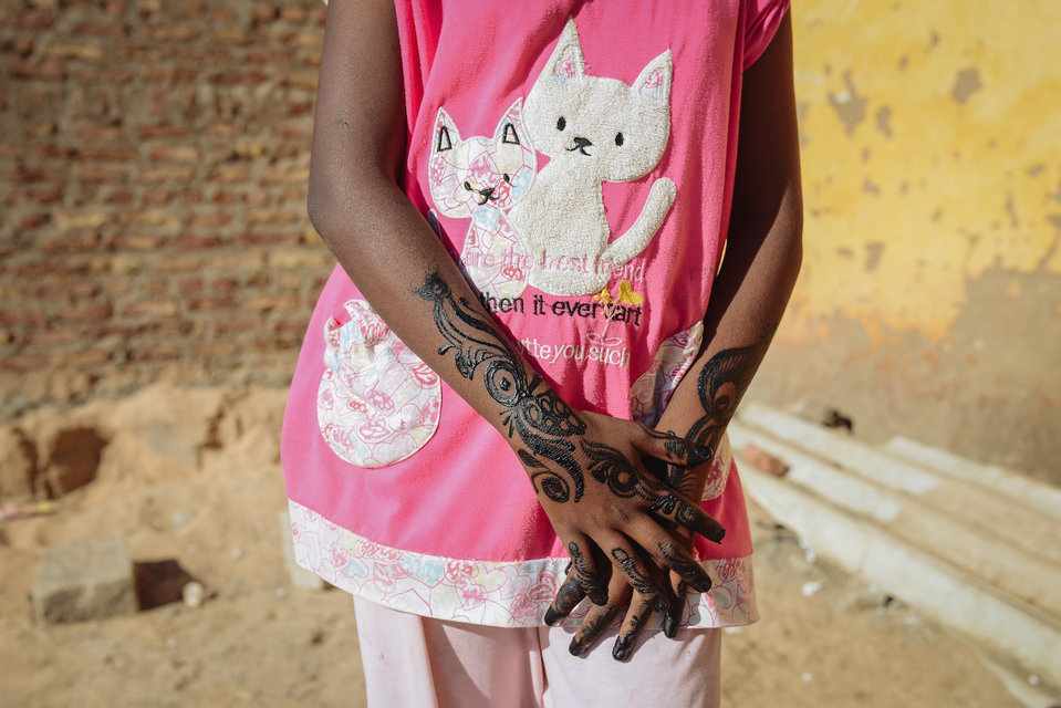 فتاة نوبية تنتظر نقوشات “الحنّا” لتجف