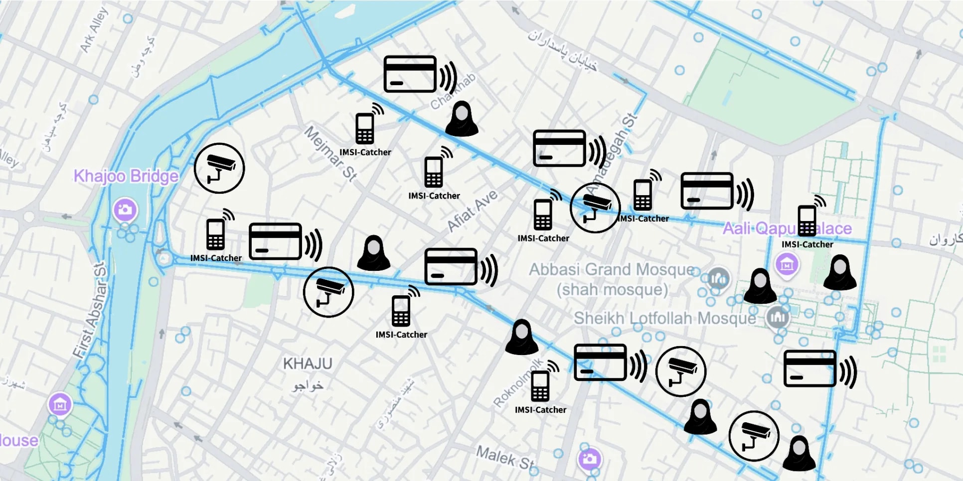A schematic map of the surveillance equipment used in the tourist area of ​​Isfahan, based on eyewitness information shared with Filterwatch.
