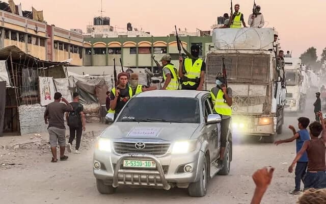 Armed men claiming to secure trucks loaded with humanitarian aid in Gaza.